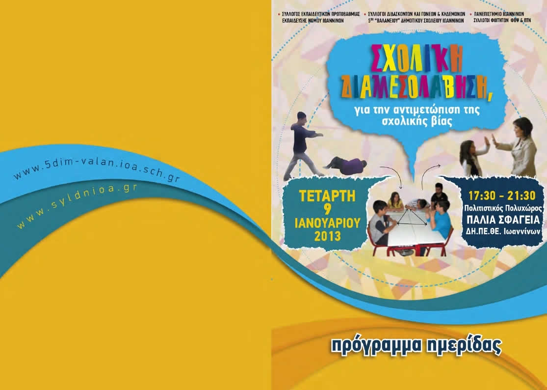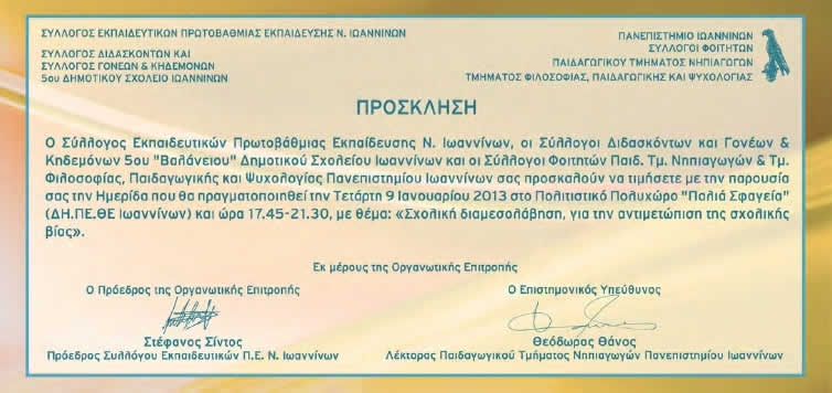 Τετάρτη 9 Ιανουαρίου 2013 στο πολιτιστικό πολυχώρο "Παλιά Σφαγεία" (ΔΗ.ΠΕ.ΘΕ Ιωαννίνων) και ώρα 17.45 - 21.30.